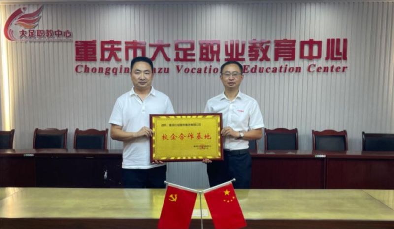 6月28日下午,重慶紅冠服飾集團(tuán)與重慶大足區(qū)職業(yè)教育中心簽定校企合作基地協(xié)議并授牌。
